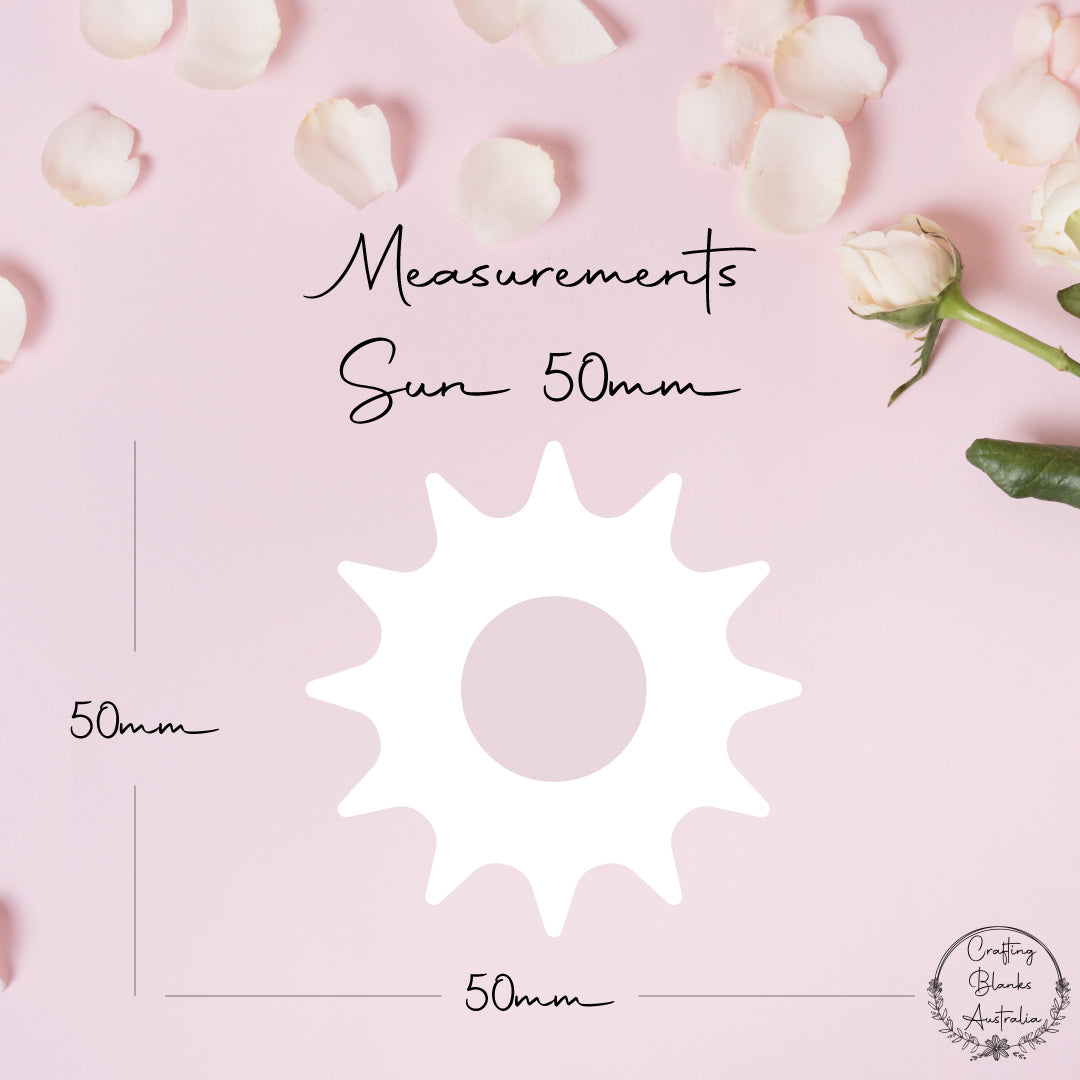 Add a touch of charm to your projects with our blank sun shape — a sweet and versatile addition to your crafting collection. Whether you’re designing tags, keyrings, signage, or event décor, birth announcements, milestone discs, this shape is the perfect base for all your creative ideas.